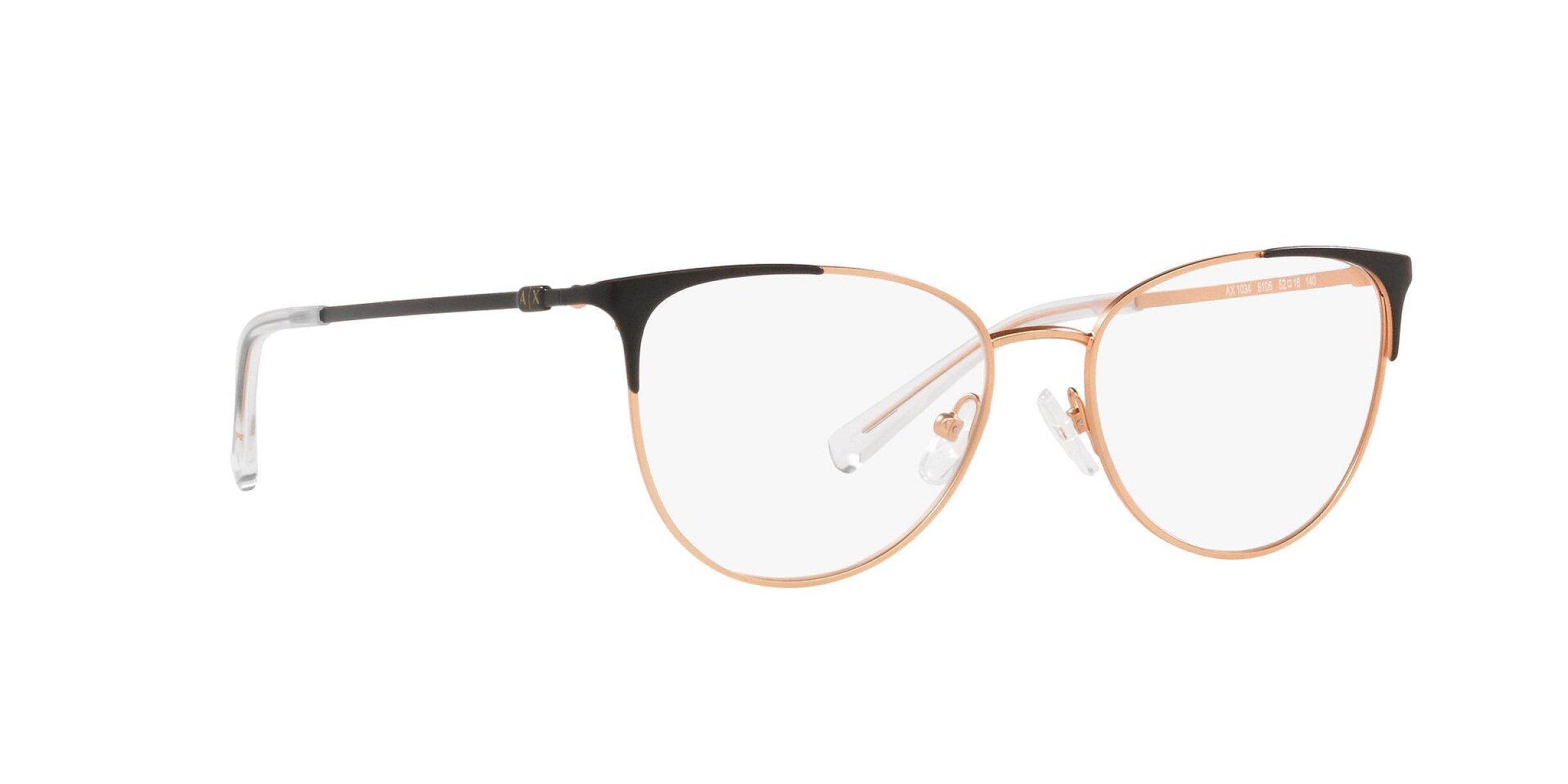 Tyto dámské dioptrické brýle značky Armani Exchange jsou vyrobeny v celorámové, cat eye verzi. Designové rámy jsou kovové v okouzlující černé, zlaté, průhledné barvě.