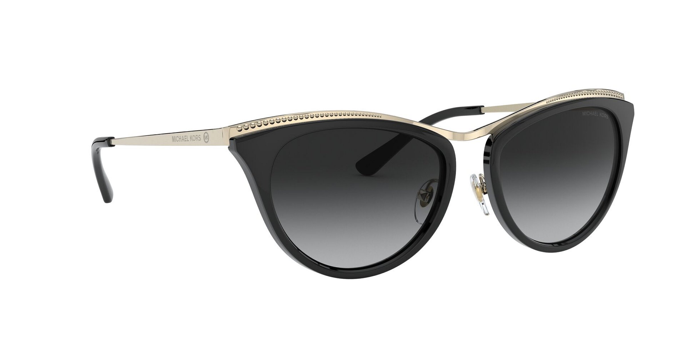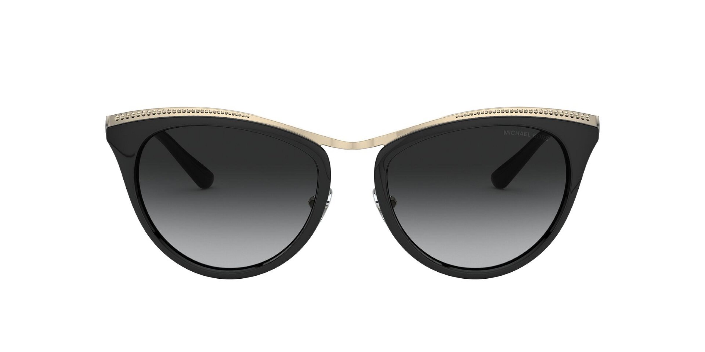 Tyto dámské sluneční brýle značky Michael Kors jsou vyrobeny v celorámové, cat eye, oválné verzi. Řešení čoček je u tohoto modelu gradient, standardní v příjemné černé, šedé barvě. Designové rámy jsou kovové, plastové v okouzlující černé, zlaté barvě.