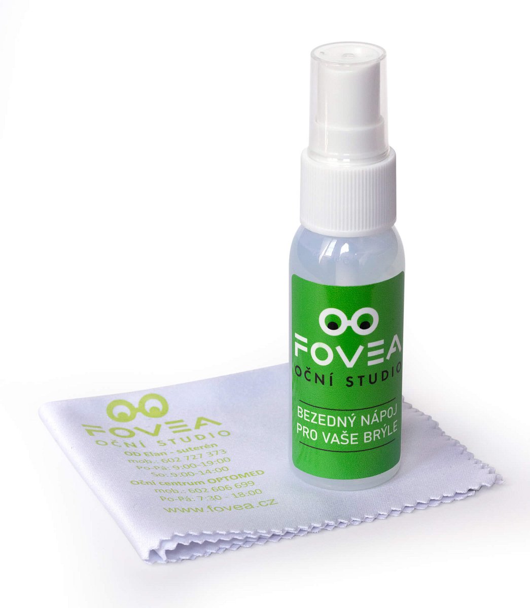 Náš bezedný nápoj slouží k dokonalému vyčištění skel vašich brýlí a ulevuje tak zraku od nečistot, které se na sklech objevují i při tom nejpečlivějším přístupu. Po použití nápoje na sklech zůstane tenký film, který brání zamlžení a to je velké plus, které oceníte hlavně v zimě. Doplnění je doživotně zdarma na všech pobočkách Očního studia Fovea.