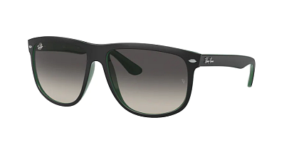 Tyto pánské sluneční brýle značky Ray-Ban jsou vyrobeny v celorámové, obdélníkové verzi. Řešení čoček je u tohoto modelu gradient v příjemné šedé barvě. Designové rámy jsou plastové v okouzlující černé, zelené barvě.
