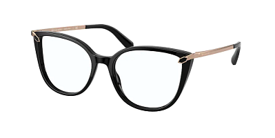 Tyto dámské dioptrické brýle značky Bulgari jsou vyrobeny v celorámové, obdélníkové verzi. Designové rámy jsou plastové v okouzlující černé barvě.