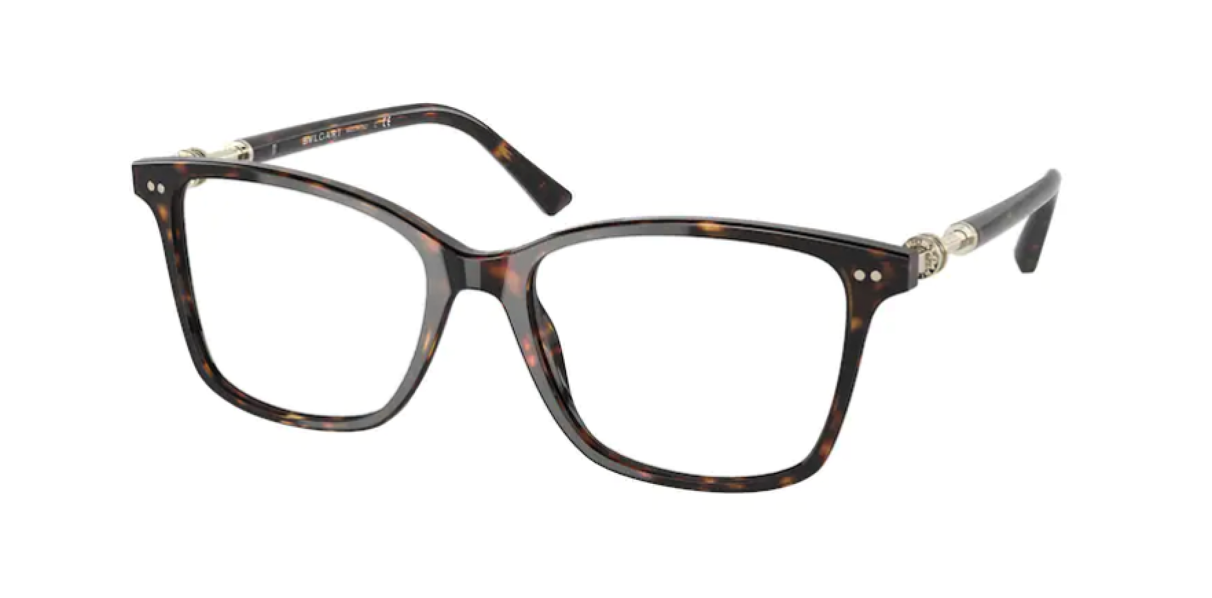 Tyto dámské dioptrické brýle značky Bulgari jsou vyrobeny v celorámové, obdélníkové verzi.