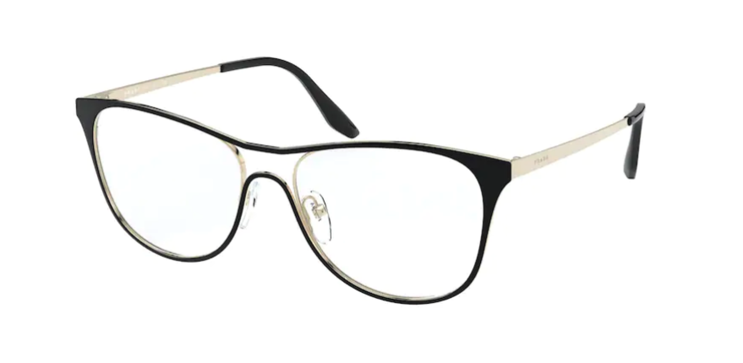 Tyto dámské dioptrické brýle značky Prada jsou vyrobeny v celorámové, oválné, obdélníkové verzi. Designové rámy jsou kovové v okouzlující černé, zlaté barvě.