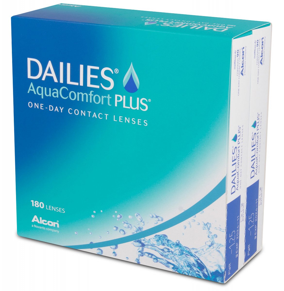 V balení se nachází 180 kusů jednodenních kontaktních čoček Dailies AquaComfort Plus.