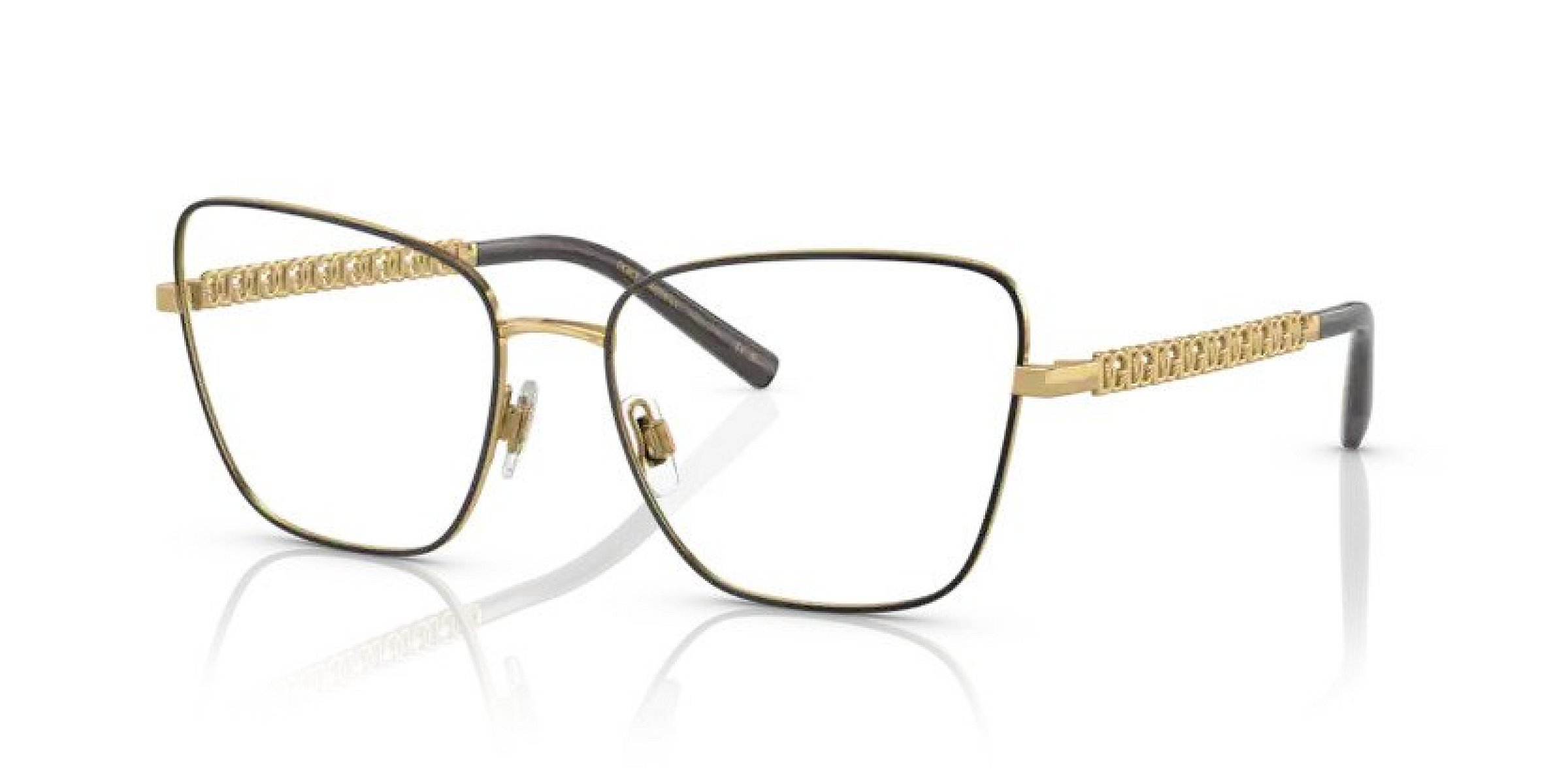 Tyto dámské dioptrické brýle značky Dolce & Gabbana jsou vyrobeny v celorámové, motýlek verzi. Designové rámy jsou kovové v okouzlující černé, zlaté barvě.