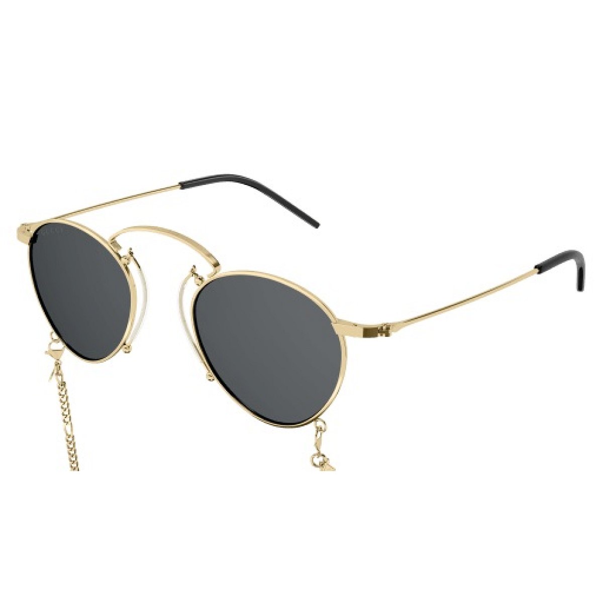 Tyto unisex (pro ženy i muže) sluneční brýle značky Gucci jsou vyrobeny v celorámové, kulaté verzi. Designové rámy jsou kovové v okouzlující zlaté barvě.