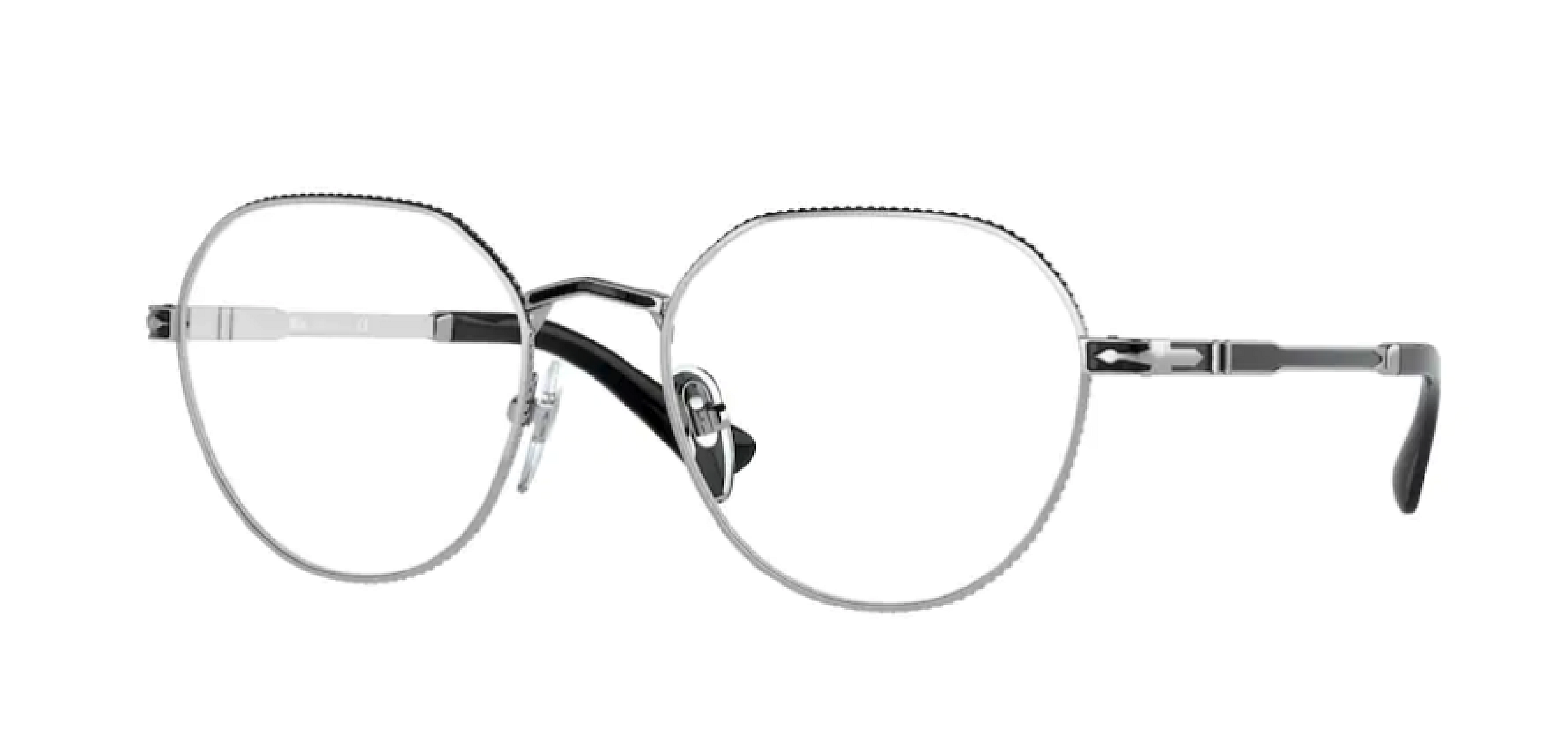 Tyto unisex (pro ženy i muže) dioptrické brýle značky Persol jsou vyrobeny v celorámové, oválné, vícehranné verzi. Designové rámy jsou kovové v okouzlující stříbrné barvě.
