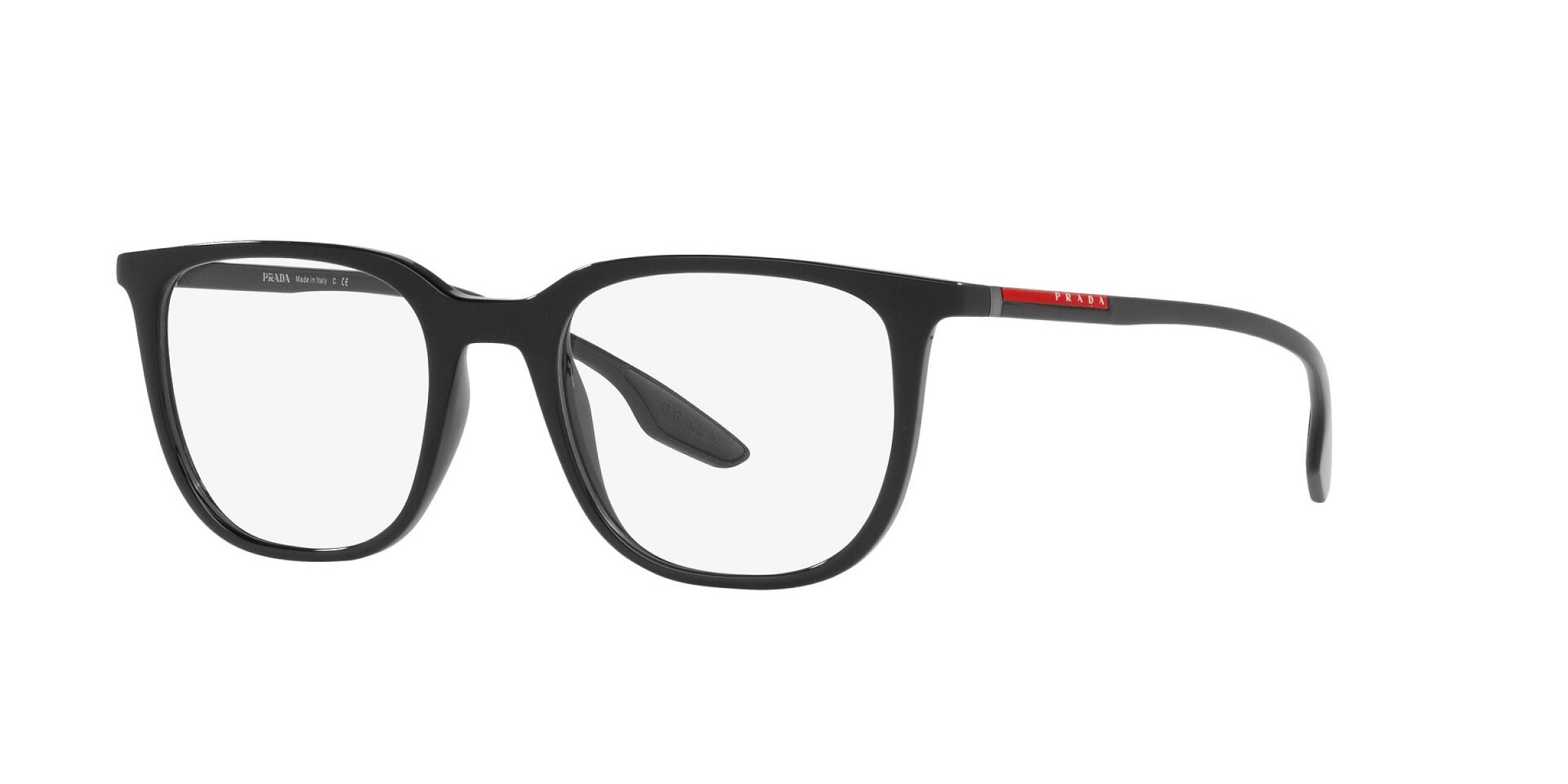 Tyto pánské dioptrické brýle značky Prada jsou vyrobeny v celorámové, obdélníkové verzi. Designové rámy jsou plastové v okouzlující černé barvě.