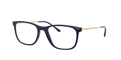 Tyto unisex (pro ženy i muže) dioptrické brýle značky Ray-Ban jsou vyrobeny v celorámové, obdélníkové verzi. Designové rámy jsou plastové v okouzlující zlaté, modré barvě.