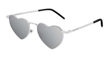 Tyto unisex (pro ženy i muže) sluneční brýle značky Saint Laurent jsou vyrobeny v celorámové, srdce verzi. Designové rámy jsou kovové v okouzlující černé, stříbrné barvě.