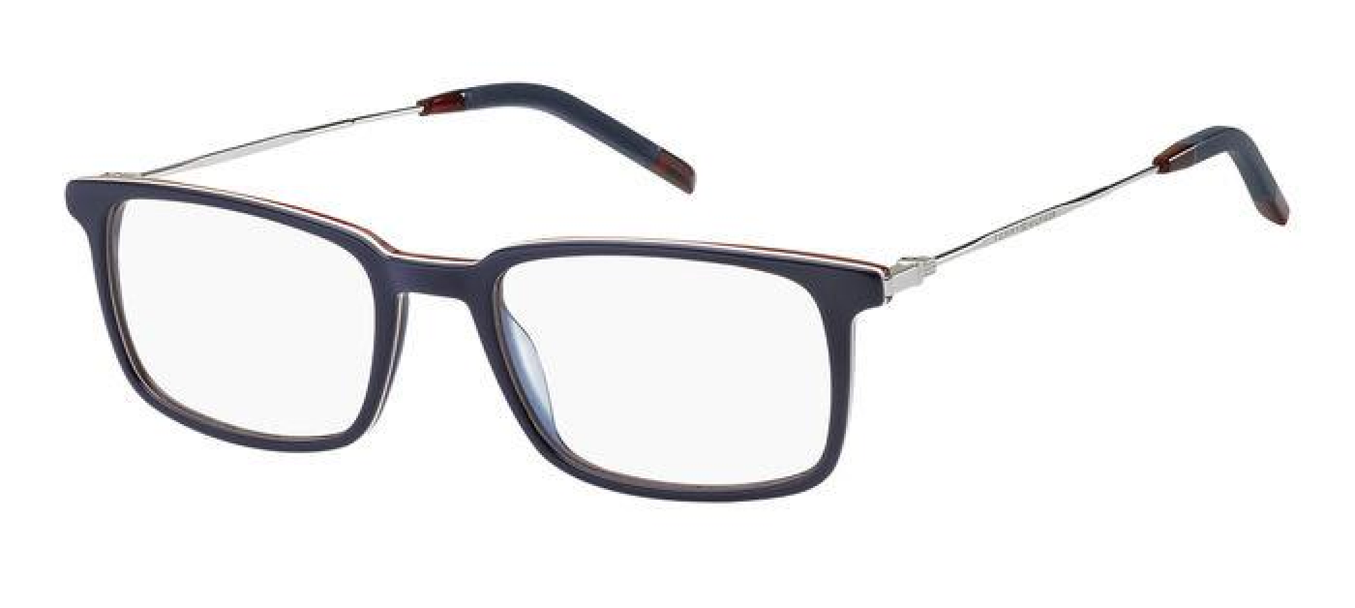 Tyto pánské dioptrické brýle značky Tommy Hilfiger jsou vyrobeny v celorámové, obdélníkové verzi. Designové rámy jsou kovové, acetátové v okouzlující stříbrné, modré barvě.
