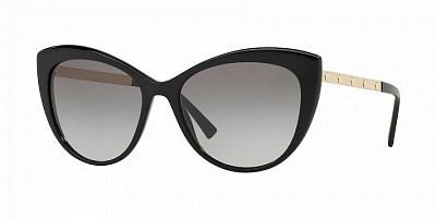 Tyto dámské sluneční brýle značky Versace jsou vyrobeny v celorámové, cat eye, oválné verzi. Řešení čoček je u tohoto modelu gradient, standardní v příjemné černé barvě. Designové rámy jsou kovové, plastové v okouzlující černé, zlaté barvě.