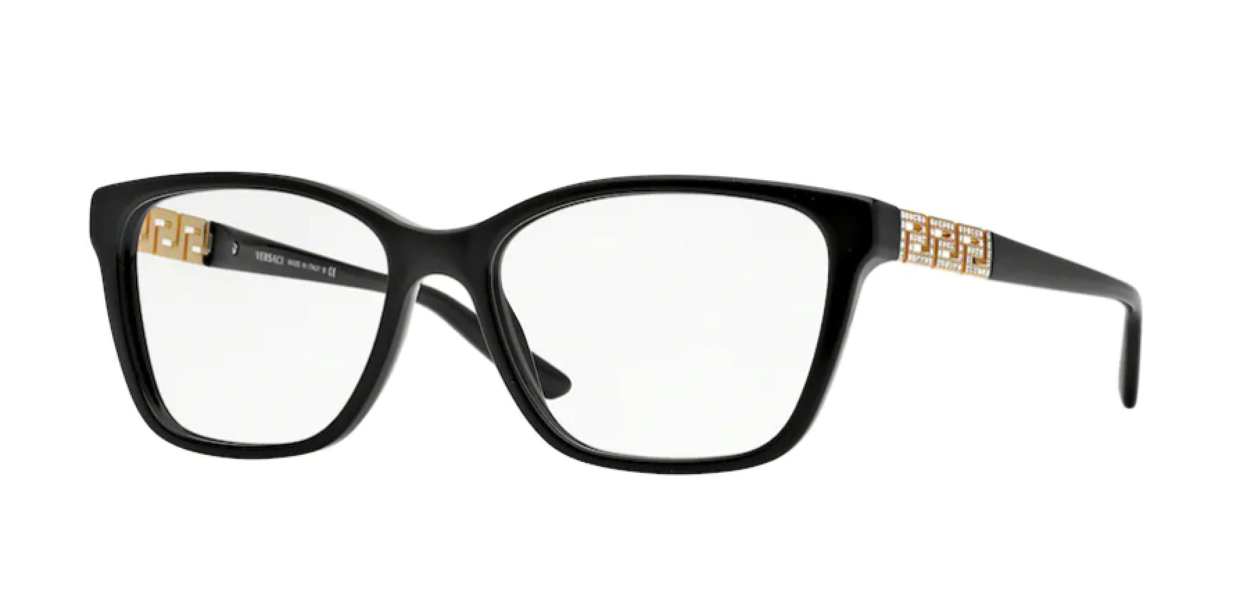 Tyto dámské dioptrické brýle značky Versace jsou vyrobeny v celorámové, motýlek verzi. Designové rámy jsou plastové v okouzlující černé, zlaté barvě.