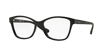 Tyto dámské dioptrické brýle značky Vogue jsou vyrobeny v celorámové, cat eye verzi. Designové rámy jsou plastové v okouzlující černé barvě.
