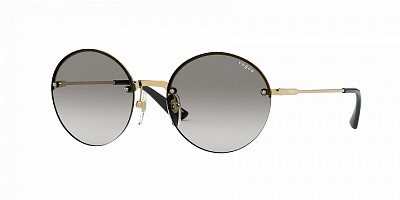 Tyto dámské sluneční brýle značky Vogue jsou vyrobeny v celorámové, kulaté verzi. Řešení čoček je u tohoto modelu gradient, standardní v příjemné černé, šedé barvě. Designové rámy jsou kovové v okouzlující černé, zlaté barvě.