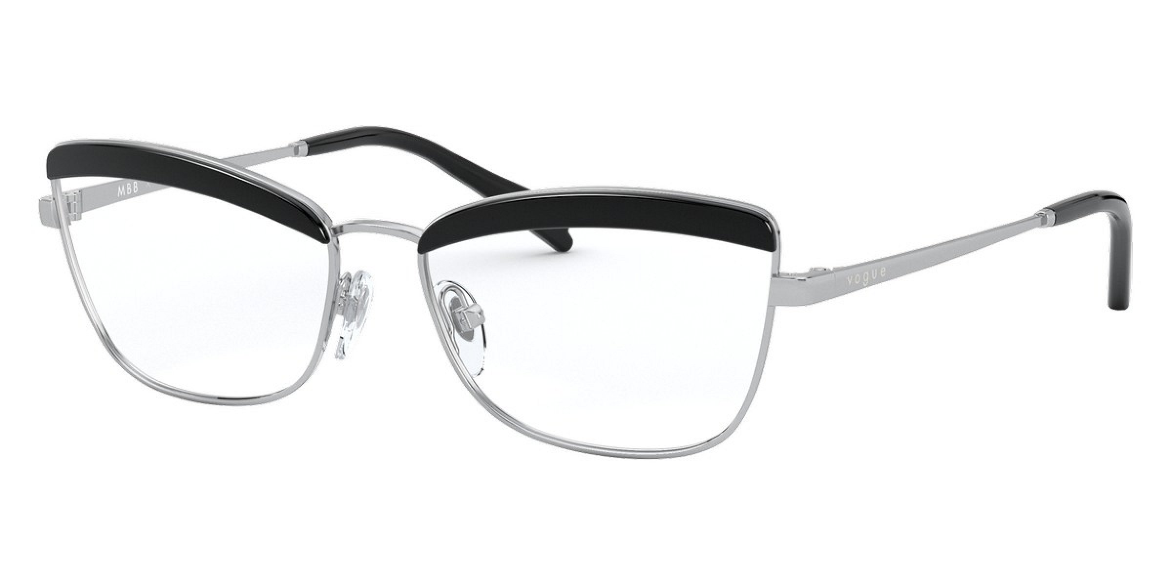 Tyto dámské dioptrické brýle značky Vogue jsou vyrobeny v celorámové, motýlek verzi. Designové rámy jsou kovové v okouzlující stříbrné barvě.