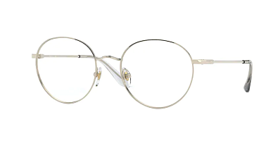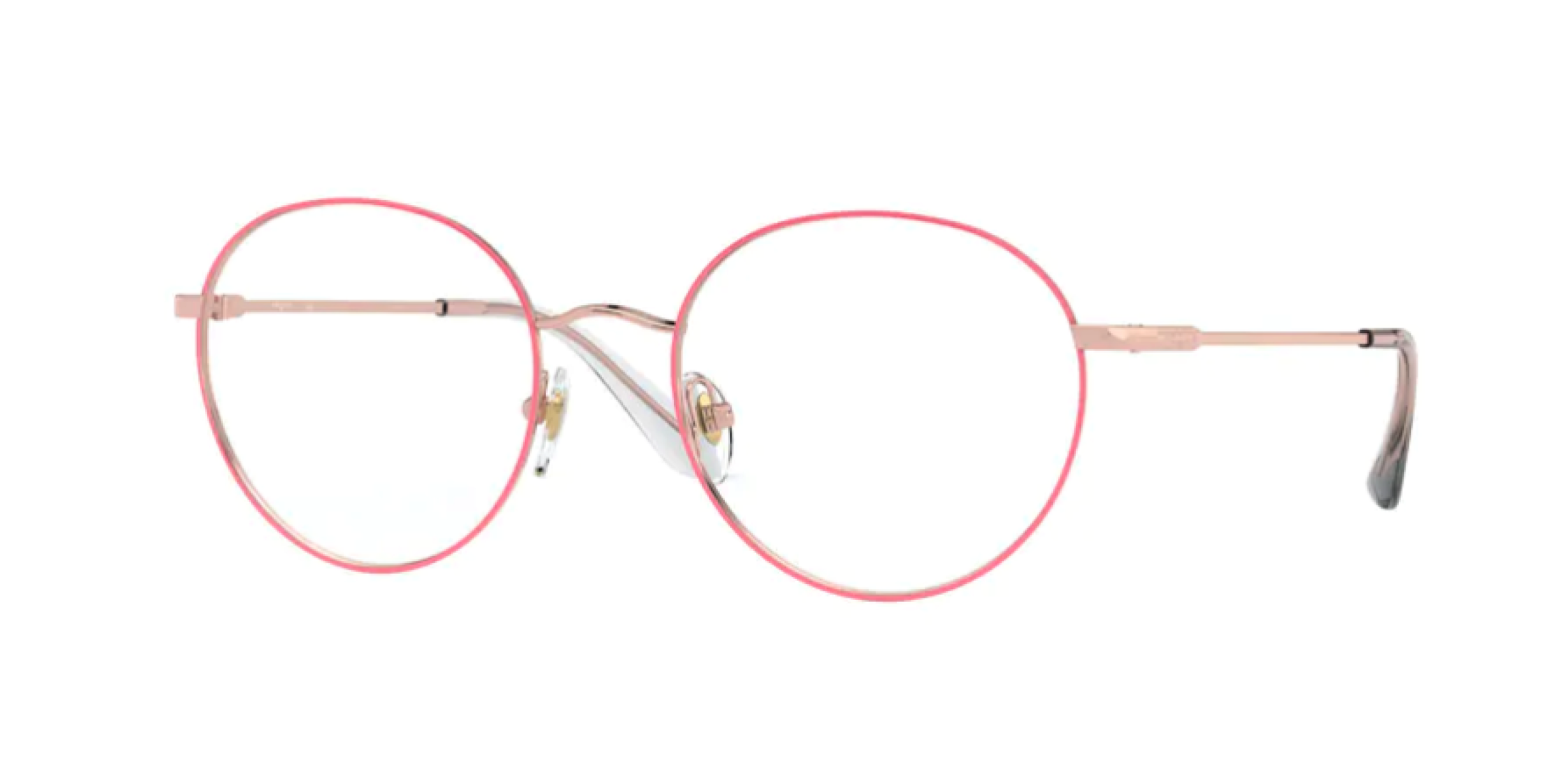 Tyto dámské dioptrické brýle značky Vogue jsou vyrobeny v celorámové, kulaté, nepravidelné verzi. Designové rámy jsou kovové v okouzlující zlaté, růžové barvě.