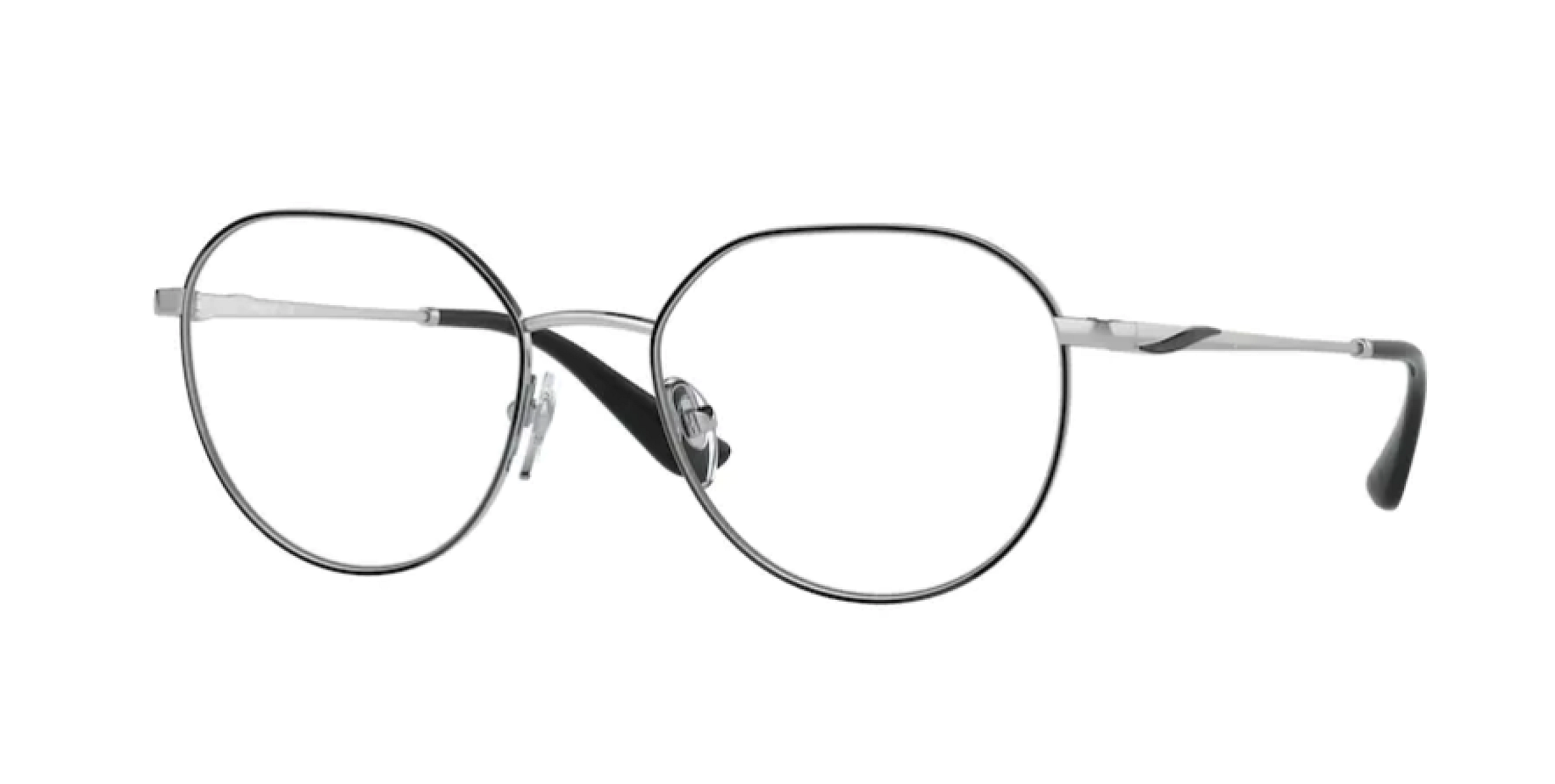 Tyto dámské dioptrické brýle značky Vogue jsou vyrobeny v celorámové, vícehranné, nepravidelné verzi. Designové rámy jsou kovové v okouzlující černé, stříbrné barvě.