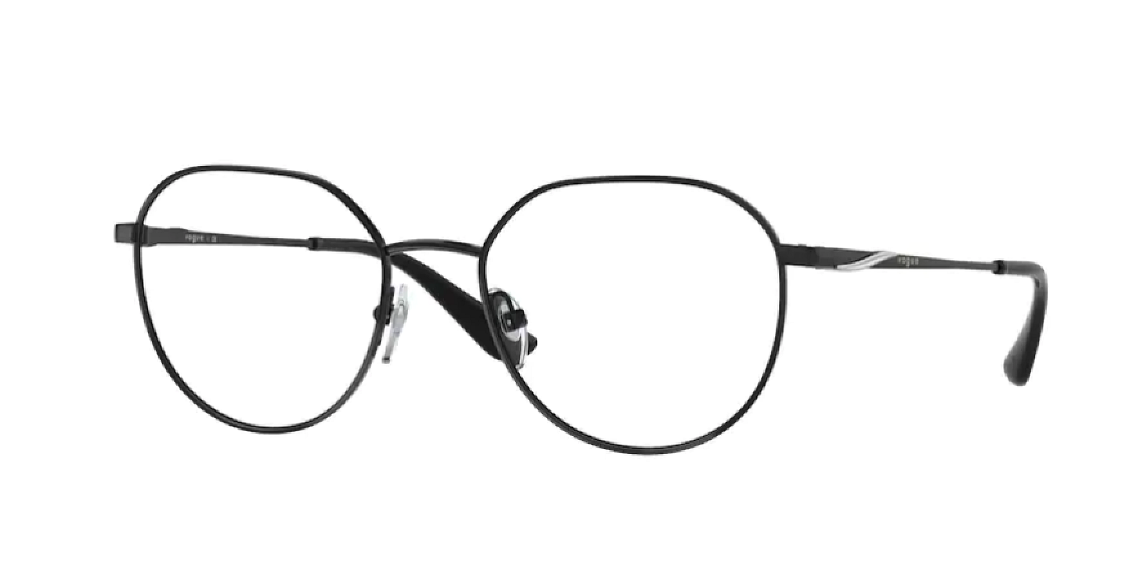 Tyto dámské dioptrické brýle značky Vogue jsou vyrobeny v celorámové, oválné, kulaté verzi. Designové rámy jsou kovové v okouzlující černé barvě.