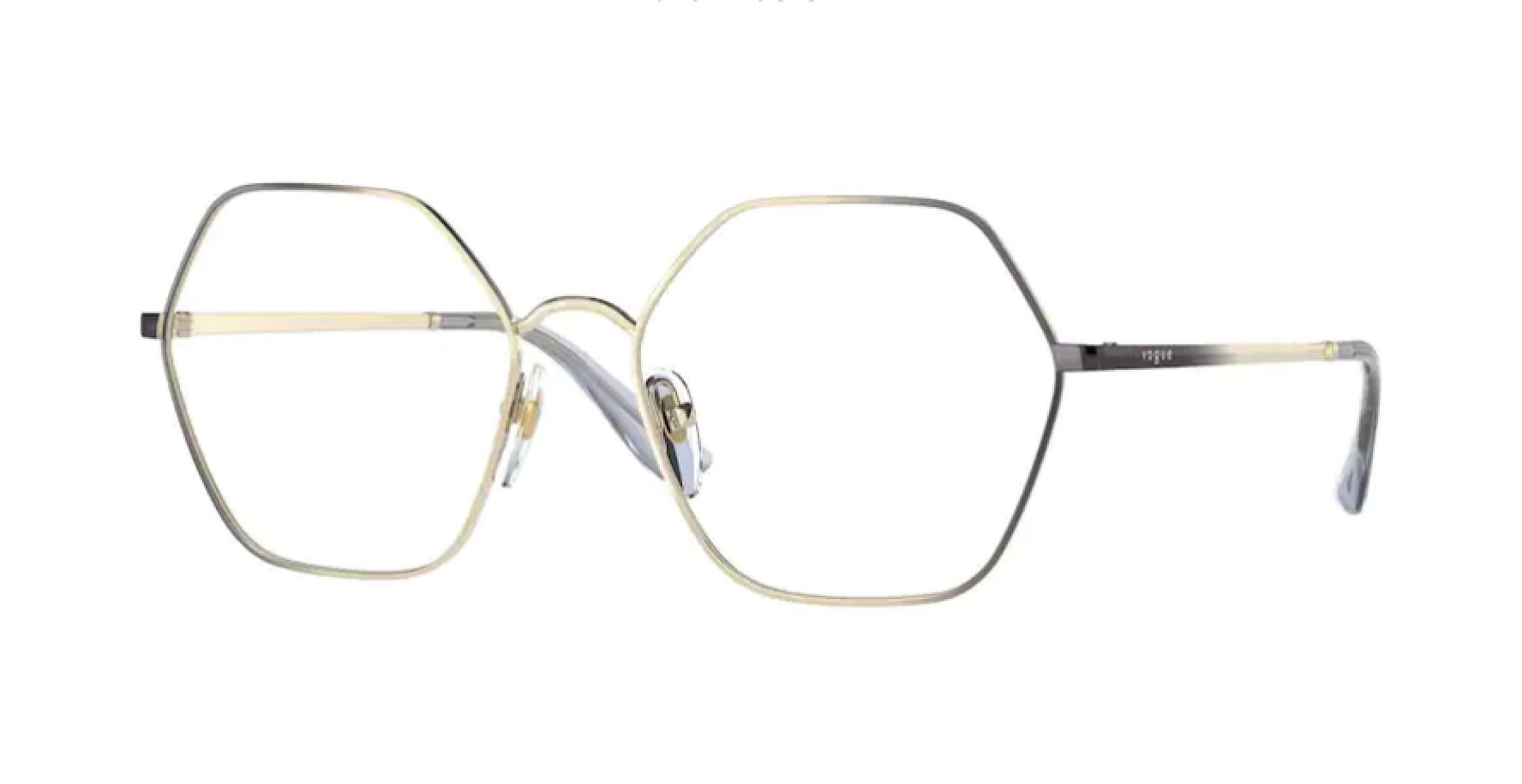 Tyto dámské dioptrické brýle značky Vogue jsou vyrobeny v celorámové, obdélníkové verzi. Designové rámy jsou kovové v okouzlující stříbrné, zlaté barvě.